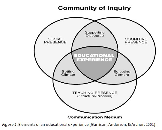 (Garrison, D. R., Anderson, T., & Archer, W. (2000). Critical inquiry in a text-based environment: computer conferencing in higher education. The Internet and Higher Education, 2 (2-3), 87-105)